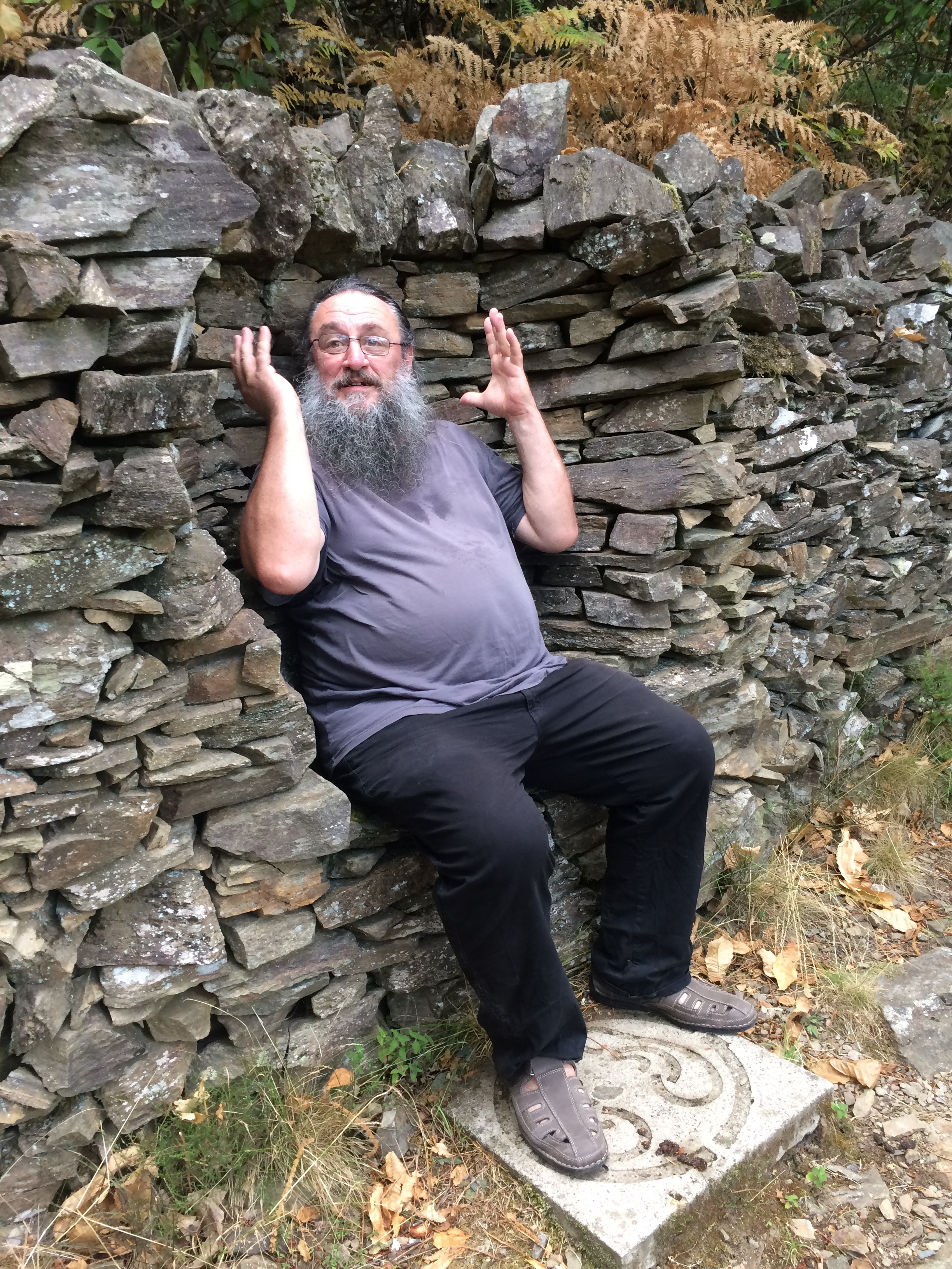 Invité par Raymond Delepierre, nous partîmes donc, sur deux jours, oreilles et regard à l’affut, en exploration de cette incroyablement belle région, où les points de vue offrent de majestueux débouchés sur des vallées encaissées, des collines escarpés à la végétation méridionale, des sentiers qui nous emmènent de surprises en surprises. Ici la pierre grise, la lauze est reine. Elle est travaillée, assemblée avec un art consommé, pour donner corps à de somptueuses maisons lovées à flanc d’escarpements rocheux, sur le lit de rivières temporairement asséchées, ou sur des promontoires aux vues imprenables. La lauze se décline en d’innombrables murets et pavages qui se fondent dans le paysage pétri de matières minérales où de très vieux volcans se décèlent encore. Il est d’ailleurs très difficile de décrire, pour qui n’y est jamais venu, cette région dessinée autour de la sinueuse rivière de la Drobie