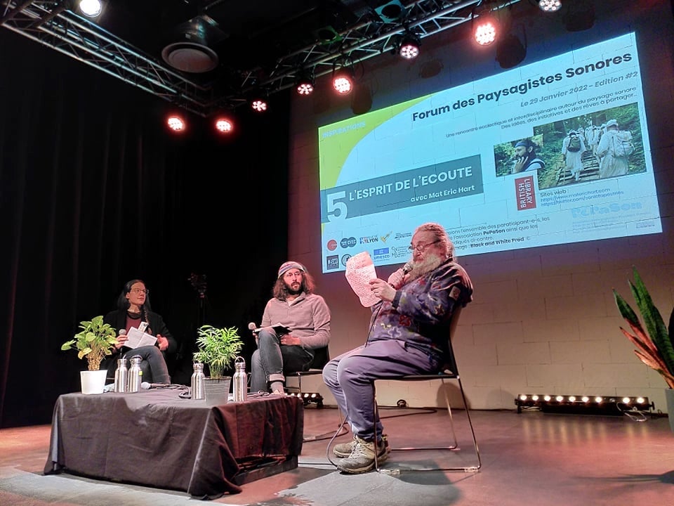 Le premier, via un Forum des paysagistes sonores, impulsé par PePaSon (Pédagogie des Paysages Sonores) se déroule à Lyon, dans le cadre de la Semaine du son de Unesco. Il invite une dizaine de participants, artistes, chercheurs, pédagogues.. à venir présenter leurs pratiques lors d’une rencontre publique. L’objectif est ici de montrer la diversité et la richesse des acteurs, preneurs de sons, créateurs sonores, bioacousticiens, concepteurs de parcours d’écoute, pédagogues… qui œuvrent à penser le monde par les deux oreilles, voire à l’aménager en prenant en compte les ambiances sonores, tant celles existantes que celles à imaginer. Ce forum est aussi un espace de débat, incontournable pour qui veut impulser une pédagogie active et participative.