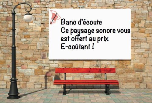 En fin de repérage, je choisis un banc et une table dans un petit parc public, pour m’adonner à un petit jeu d’écriture descriptive en temps réel, c’est à dire celui de la fenêtre temporelle de l’écoute.