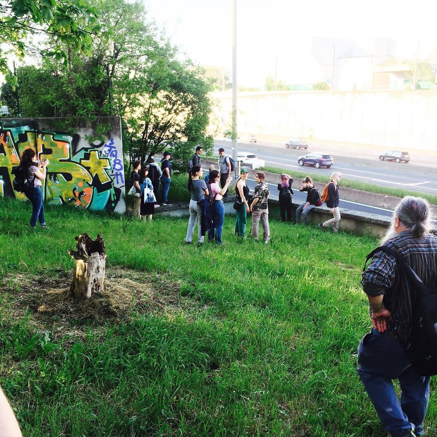 C’est donc dans un lieu non circulé, en tous cas par les automobiles que le guiderai deux PAS, l’un pour des étudiants en arts média, l’autre pour un groupe d’adolescent de 14/16 ans.